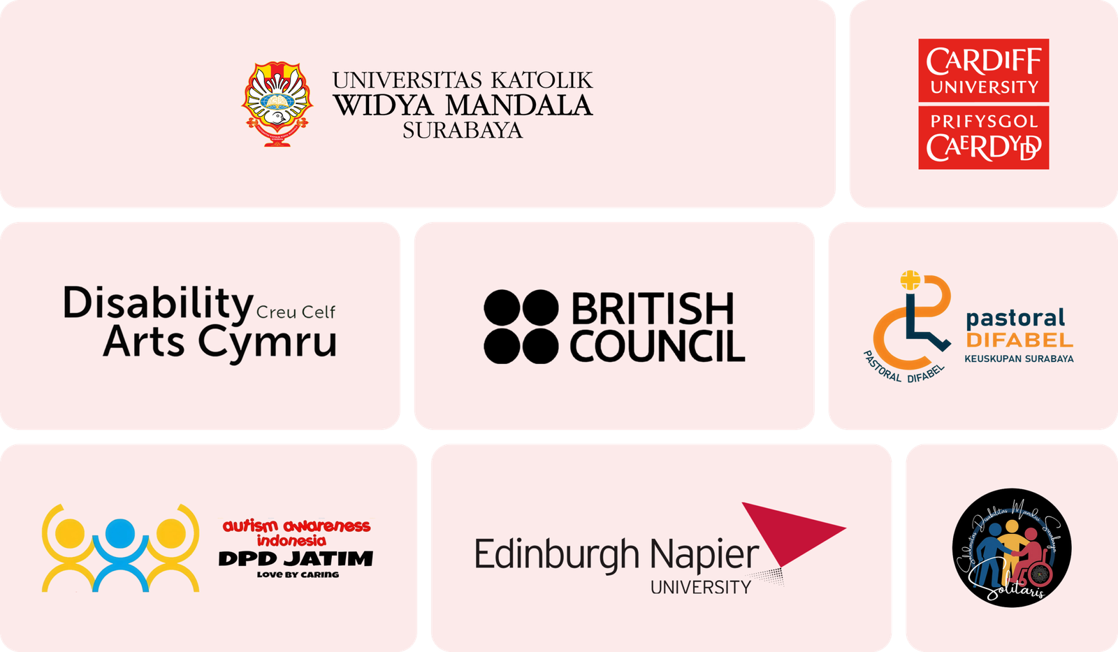 Sahabat-ID is a research project between Cardiff University (UK), Universitas Katolik Widya Mandala Surabaya (Indonesia) and Edinburgh Napier (UK), and funded by the British Council through the Going Global Partnership Programme. It combines the social model of disability and art-based storytelling to explore the lived experience of disabled students and staff in Indonesia’s higher education.